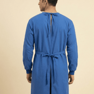 Crafted from a high-quality, breathable poly-cotton blend, this gown ensures you stay cool during long procedures while maintaining professional durability. Unlike standard gowns, the reinforced front section ensures maximum protection where you need it most. The gown is designed with a comfortable fit for male doctors and includes soft knitted cuffs to ensure surgical gloves fit securely over the sleeves.